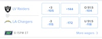 Tonight should be fireworks. The Raiders are somehow undefeated, though they have yet to face any stiff competition. They got a big win over the Ravens but that was in week 1 and was by a point, so I am not sold on them yet. I am sold on the Chargers though. Herbert is an elite passer and he has elite threats at his disposal like Keenan Allen, Austin Ekeler, and now the emergence of Mike Williams gives that offense even more firepower. The Raiders are good, but they always find ways to hurt themselves, and I see tonight being no different. However, I will not be betting on a spread or money line because this game is going to be too close. I think we see the best of both ball clubs tonight, which will result in a high scoring event. Take the over 51.5 total points, Henry Ruggs III over 46.5 receiving yards, and Austin Ekeler under 56.5 rushing yards.